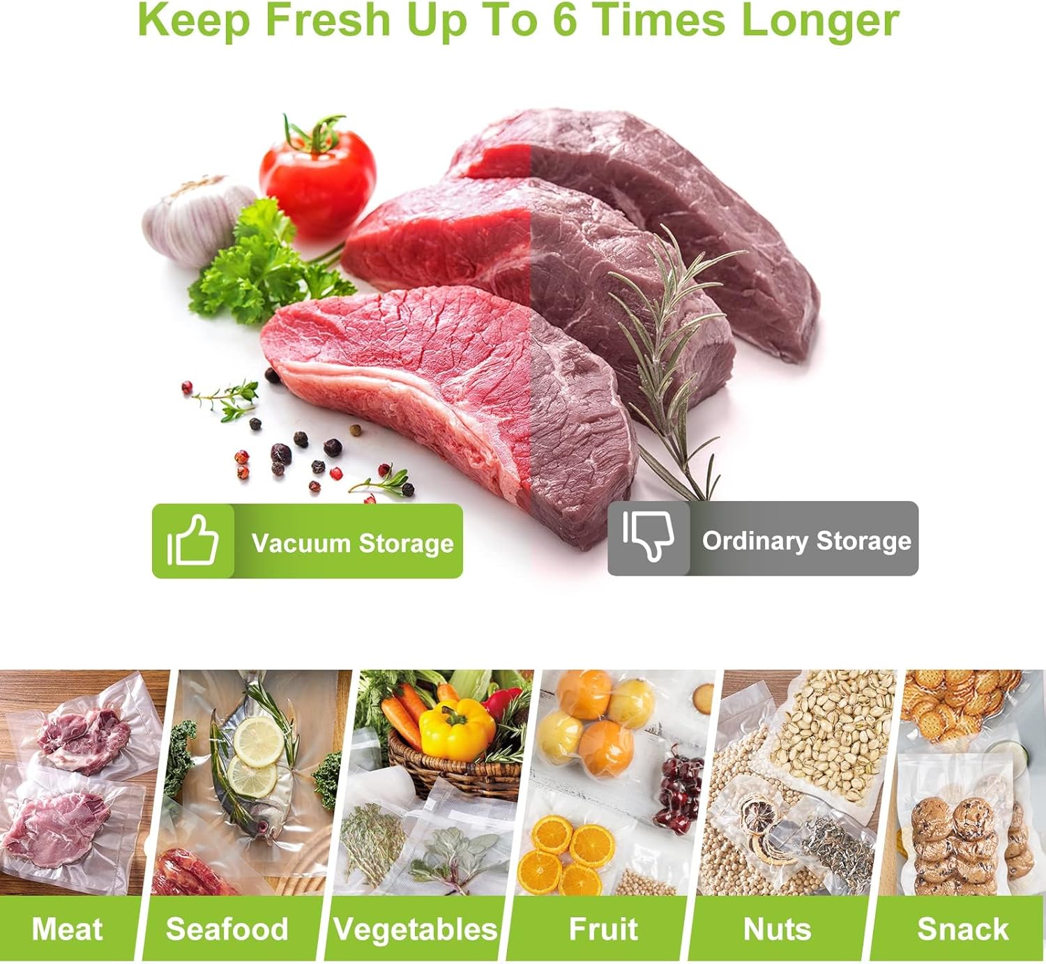 - 【Good assistant for vacuum cooking】 These vacuum film rolls are an integral part of vacuum machines. If you want to store meat, fruits, snacks, nuts and other foods for freezing, these vacuum film offers excellent sealing to preserve the original taste of food. Vacuum bags allow you to take your length five times longer than zipper bags depending on the size of the food.